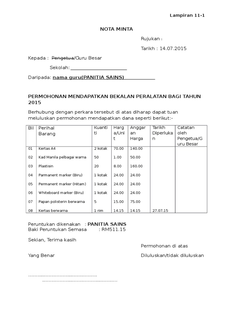 contoh nota minta sekolah