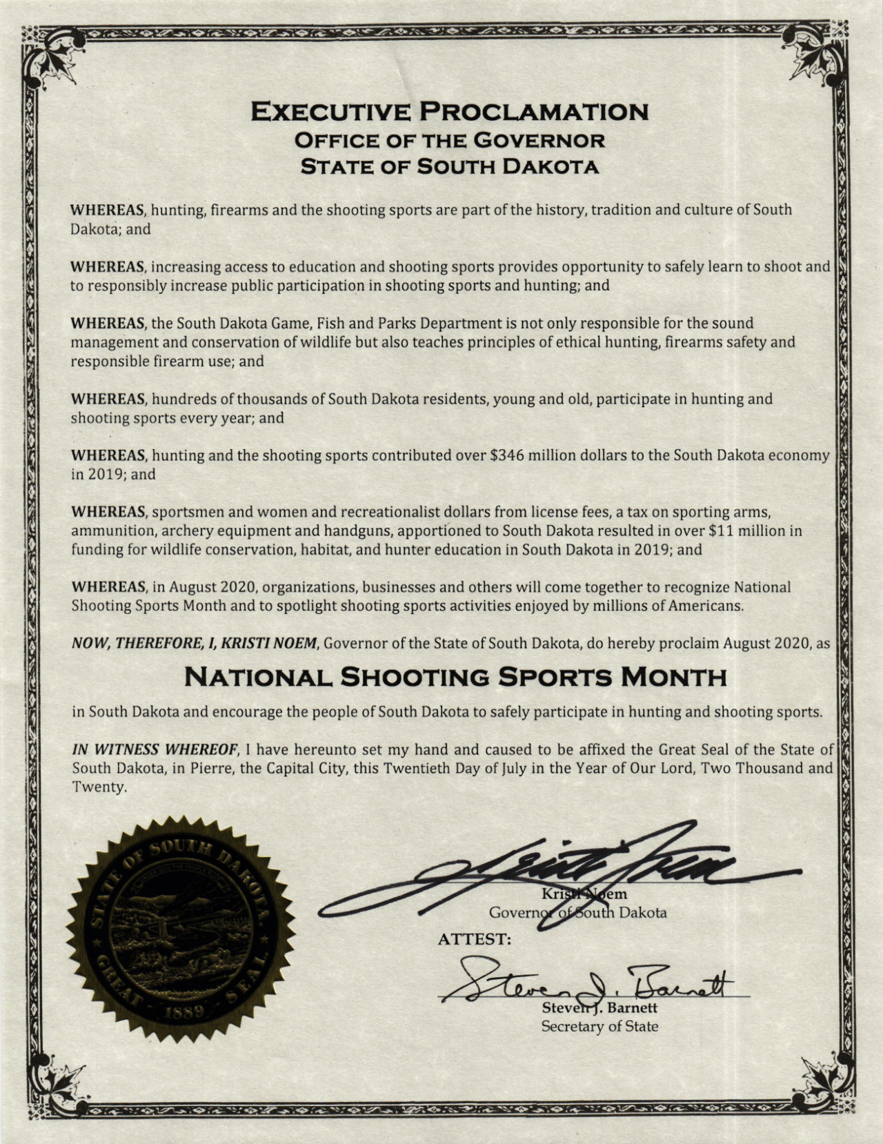 Nssf The Firearm Industry Trade Association On Twitter South Dakota S Govkristinoem R Has Proclaimed August 2020 As National Shooting Sports Month Acknowledging The Firearm Industry S 346 Million Economic Impact In The State And